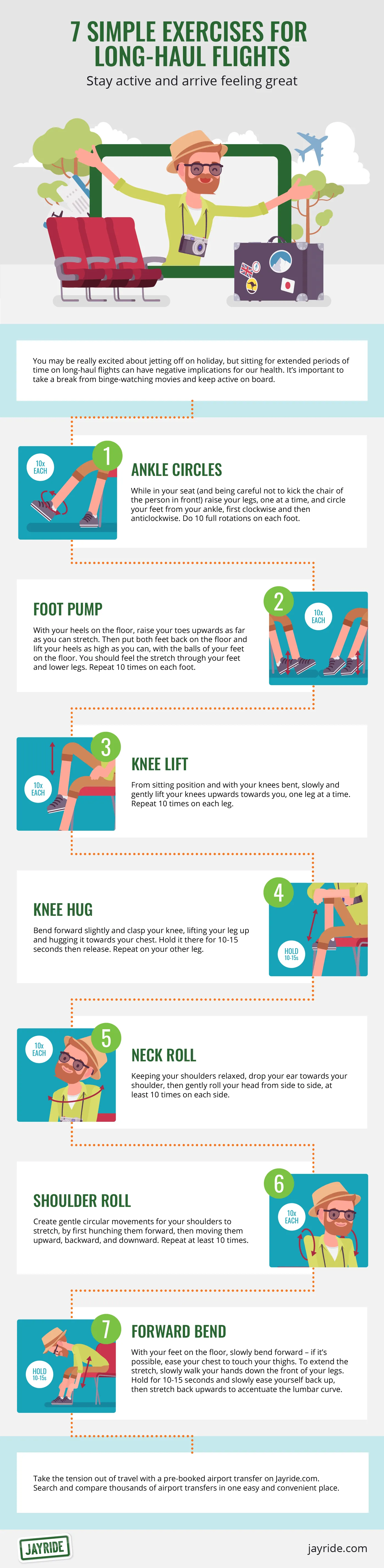 You may be really excited about jetting off on holiday, but sitting for extended periods of time on long-haul flights can have negative implications for our health. It’s important to take a break from binge-watching movies and keep active on board, says health professional Jane Simon.